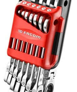 Facom 467BF.JP10 10 Piece Flexible Head Anti-Slip Ratchet Combination Spanner Set 8-19mm